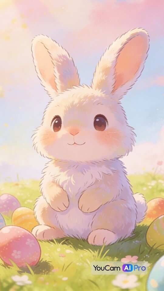 Mit der Text-zu-Bild-Funktion von YouCam AI Pro kannst du deine Vorstellungskraft entfesseln. Schauen wir uns folgenden Prompt an: “Süßer Osterhase auf einer Wiese mit Ostereiern”