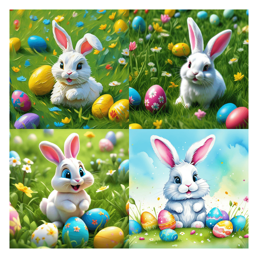 ▲ Beispiel: "Süßer Osterhase auf einer Wiese mit Ostereiern"