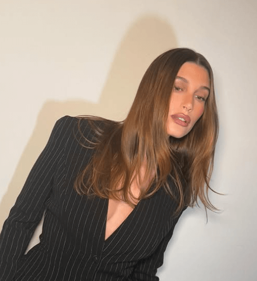 Auch Hailey Bieber liebt dieses Jahr einen natürlichen Braunton und sieht einfach fantastisch aus mit warm-braunen Haaren.
