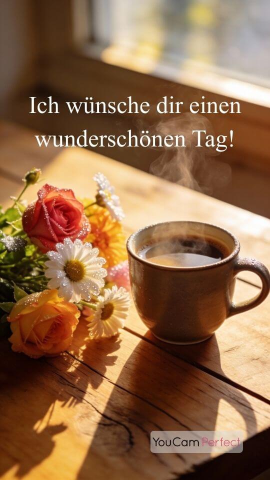 Damit deine Grüße in WhatsApp richtig gut aussehen, helfen dir klassische Spruchbilder im quadratischen oder Story-Format mit Sonne, Kaffee oder Blumen besonders.