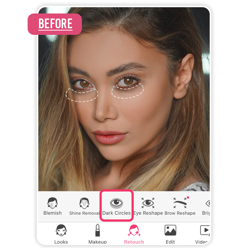 Unabhängig von der Ursache: Für das perfekte Foto musst du nicht auf eine Behandlung warten. Mit YouCam Makeup kannst du Augenringe in Sekunden digital entfernen.