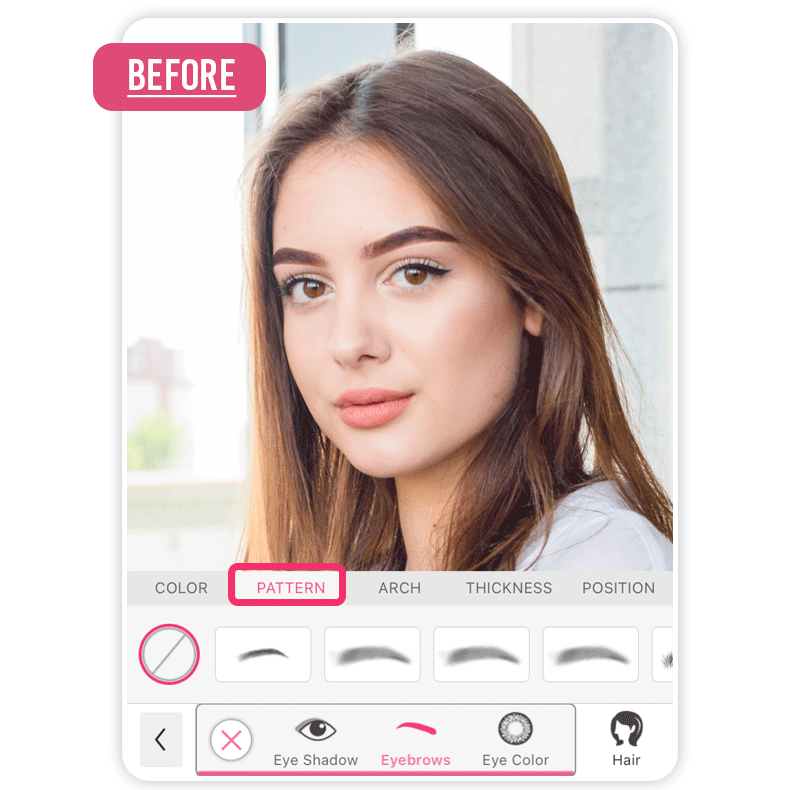 Augenbrauen rahmen das Gesicht ein und bestimmen maßgeblich den Gesamteindruck. Mit dem Augenbrauen-Shaping-Tool kannst du den Bogen anheben, die Brauen füller wirken lassen oder den Abstand anpassen.