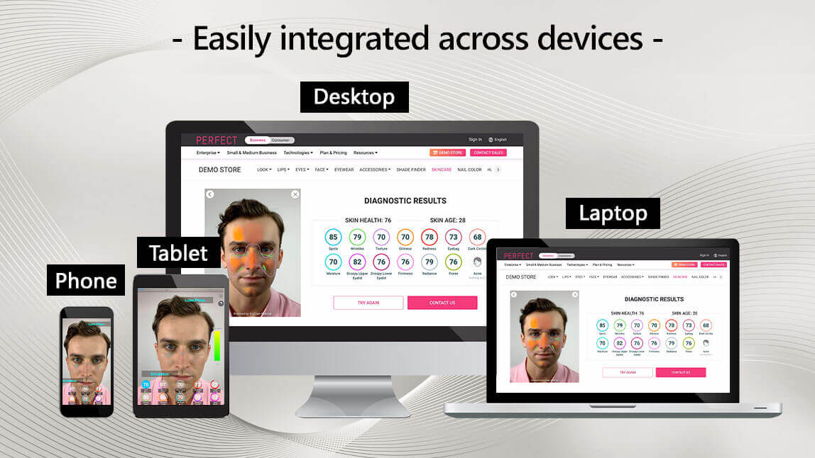 Sí. Perfect Corp permite integración total en móviles, tablets, web y hasta espejos digitales.