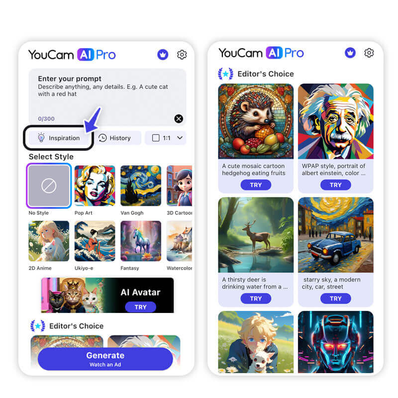 Genera impresionantes imágenes IA sin esfuerzo con YouCam AI Pro. Sigue estos sencillos pasos para convertir texto en imágenes cautivadoras: