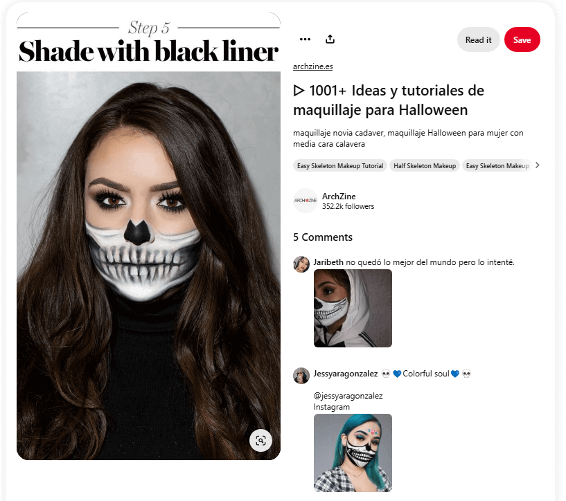 Si todavia no has encontrado la inspiracion para pintarte la cara como Catrina, Pinterest tiene un monton de usuarios con ideas unicas y maquillajes sencillos que puedes probar.