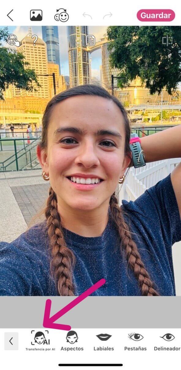 Tambien trae una funcion para transferir el maquillaje de una foto a otra (solo en iOS), es decir, si te gusta el maquillaje de una celebridad o modelo en Pinterest y quieres ver como te luciria antes de que enserio te maquillajes, lo puedes hacer con la IA