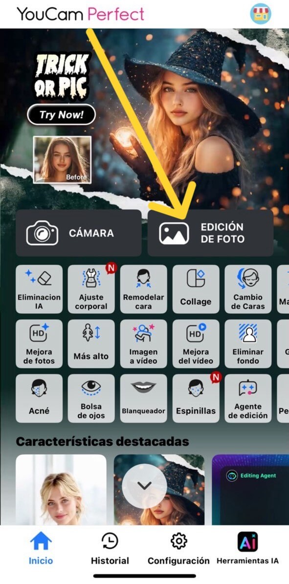 En el menú principal de la aplicación, localiza la herramienta 'Edicion de fotos'.