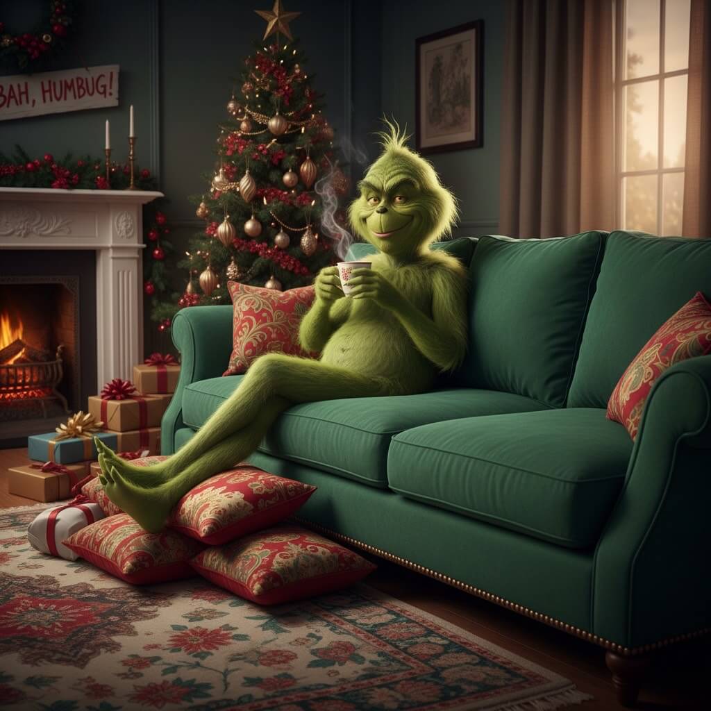 El Grinch esta popular esta Navidad con las plantillas que hacen que te sientes con el Grinch y te tomes un cafe ☕️