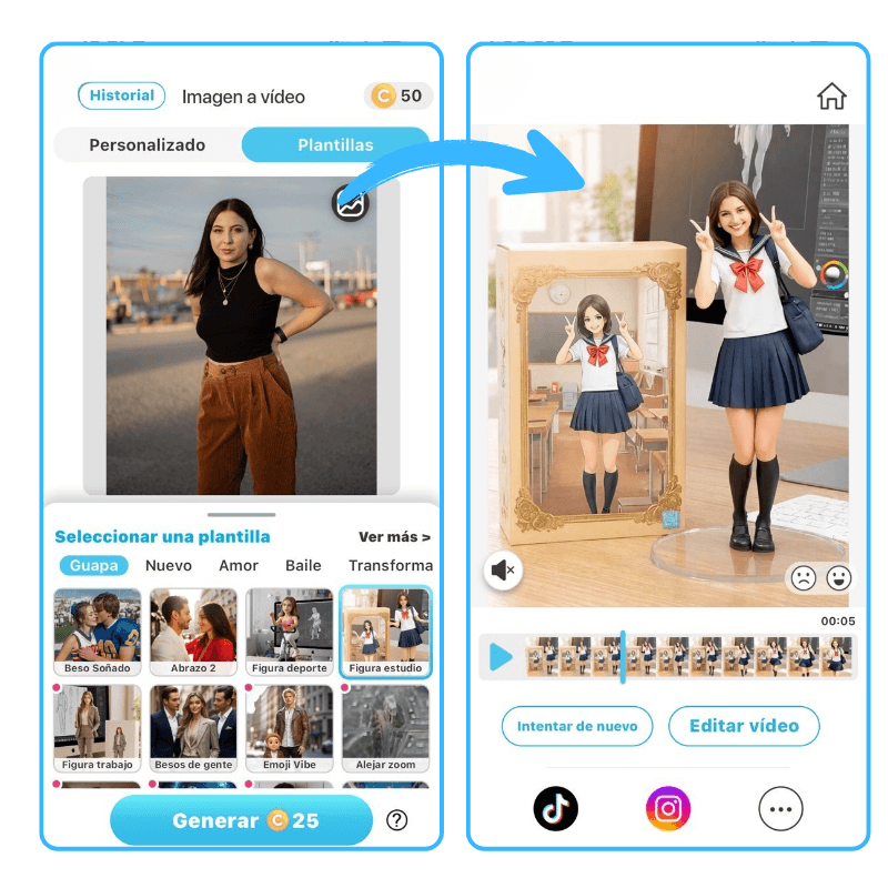 Toque Generar y vea cómo su figura cobra vida en forma de video. Guárdelo, compártalo y vea cómo aumenta el interés.