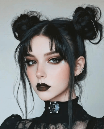 Le double chignon est parfait pour Halloween : à la fois mignon et un peu espiègle, il s’adapte à tous les styles : de la poupée hantée à la sorcière malicieuse.