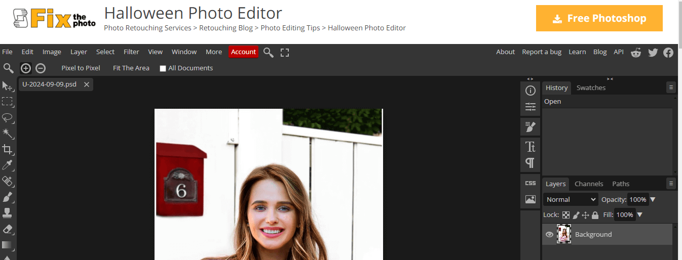 FixThePhoto propose un éditeur de photos Halloween en ligne idéal pour créer des images réalistes et effrayantes.