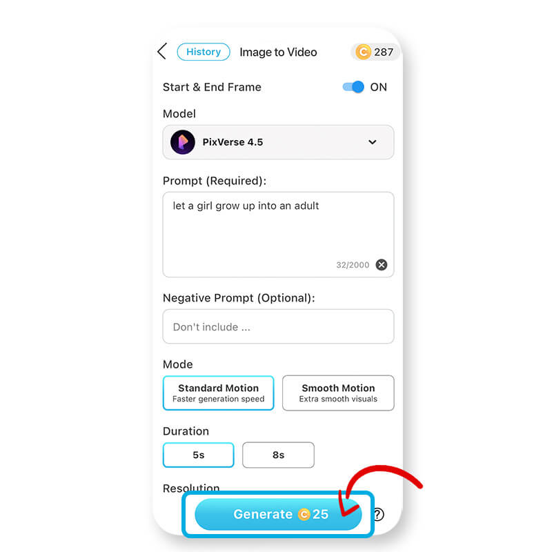 Vous n’avez pas besoin d’une invite compliquée. Saisissez simplement une phrase comme « l'enfant devient adulte » pour guider l’IA.