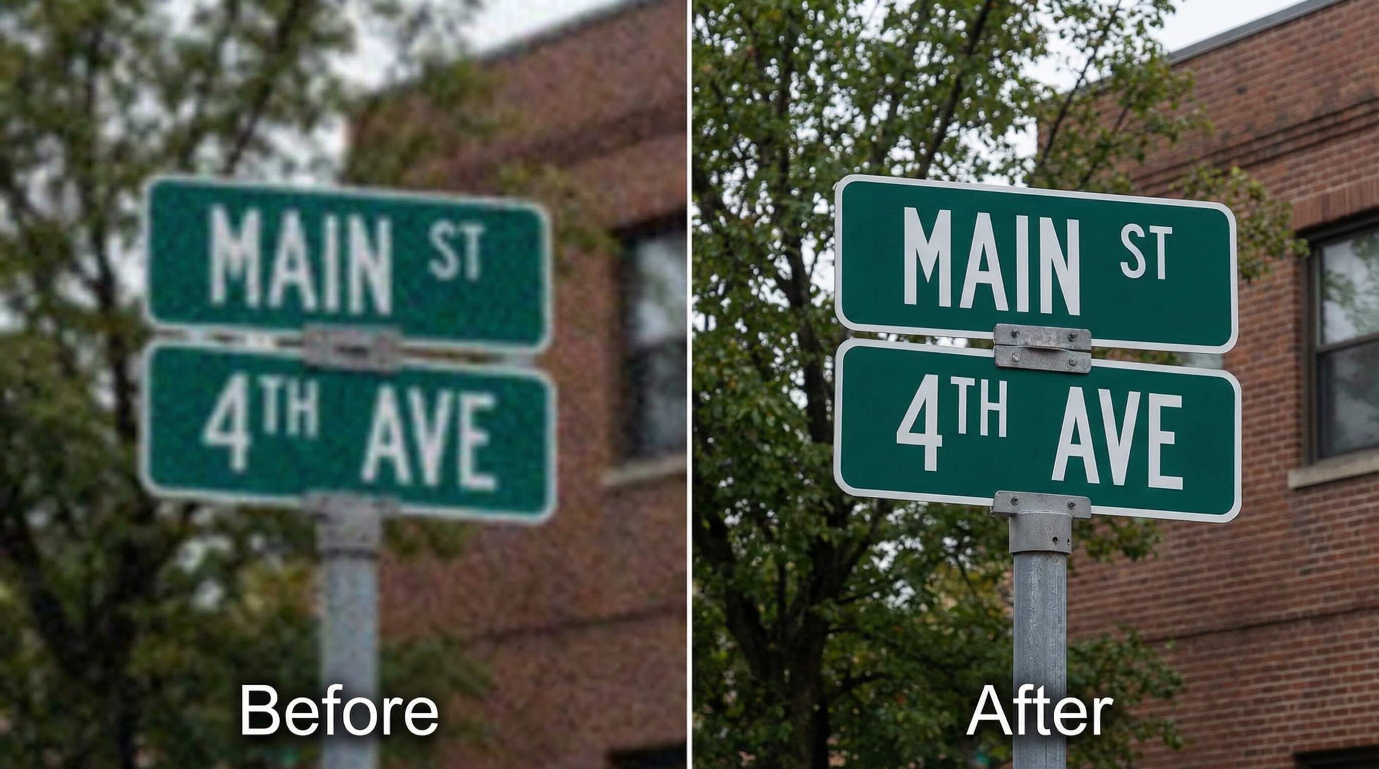 YouCam Enhance AI Blur Remover luar biasa dalam menghilangkan blur dan mempertajam tiap huruf hingga kejernihan 4K. Ini jelas AI photo enhancer terbaik untuk teks — sempurna untuk mengubah foto dokumen atau papan tanda yang buram menjadi gambar tajam berkualitas profesional. — Jackson Miles, Agen Properti