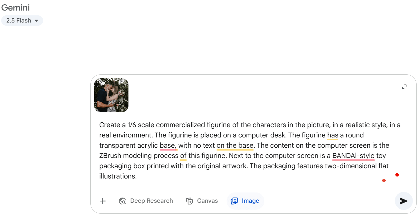 Scegli la tua foto migliore e incolla uno dei nostri prompt collaudati in Gemini 2.5 Flash Image. Per ottenere il classico effetto figure 3D, usa: