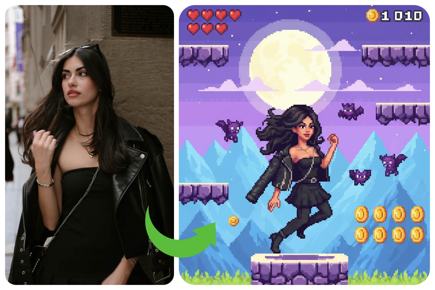 Trasformati in un classico personaggio dei videogiochi direttamente dall'era dei giochi degli anni '90 con il generatore di immagini AI.
