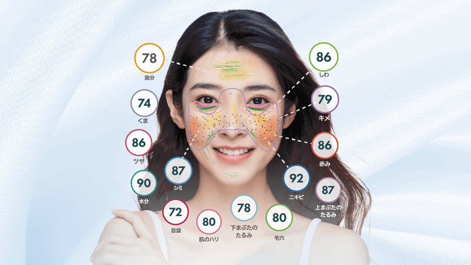 4つの光源と1800万画素の高解像度撮影により、隠れジミや細かなシワ、将来的な肌トラブルの兆候まで詳細に解析します。