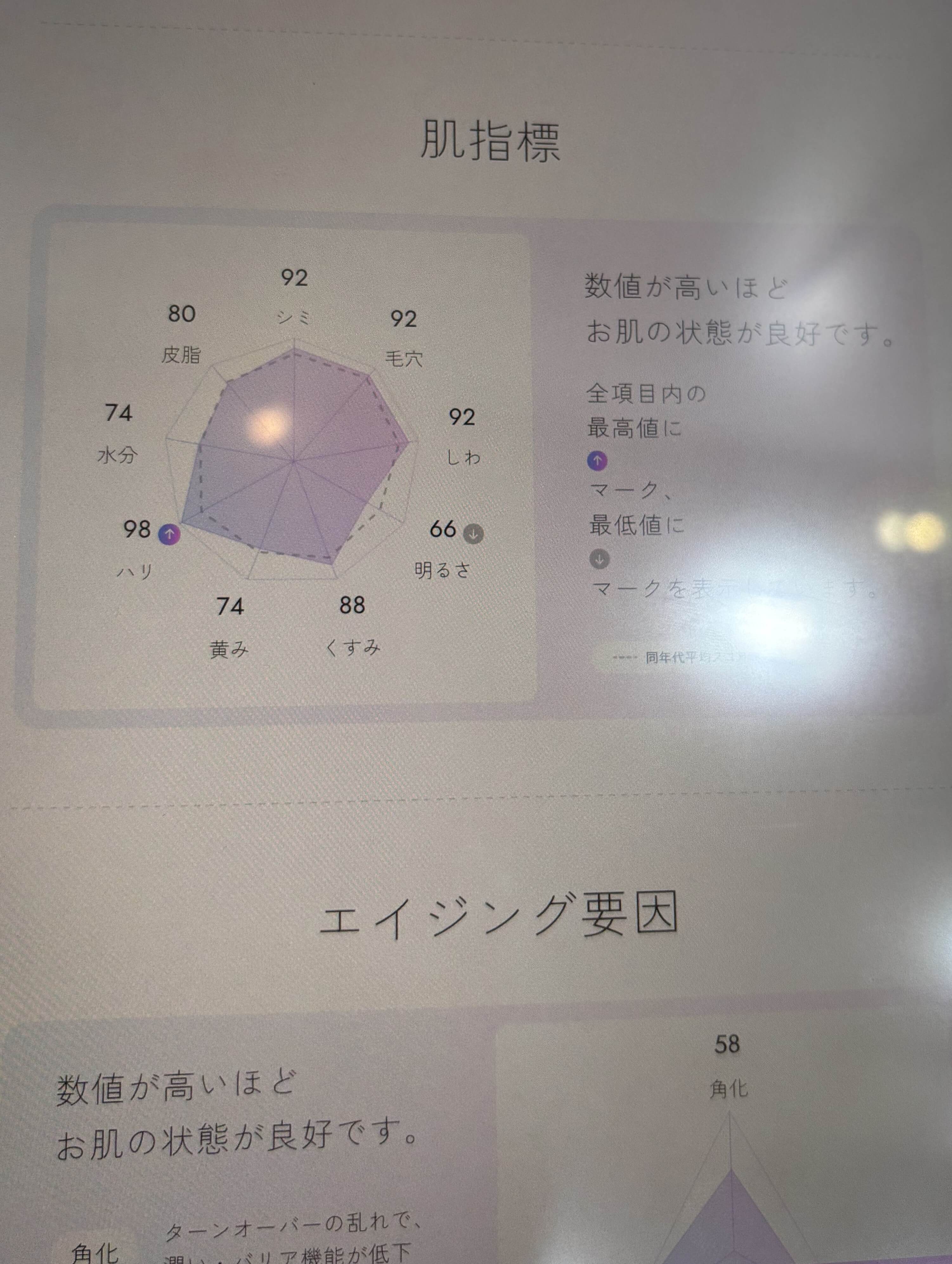 日頃から気になる肌悩みもきちんと数値に反映されており、あらためてAI肌解析技術の実力を実感しました。
