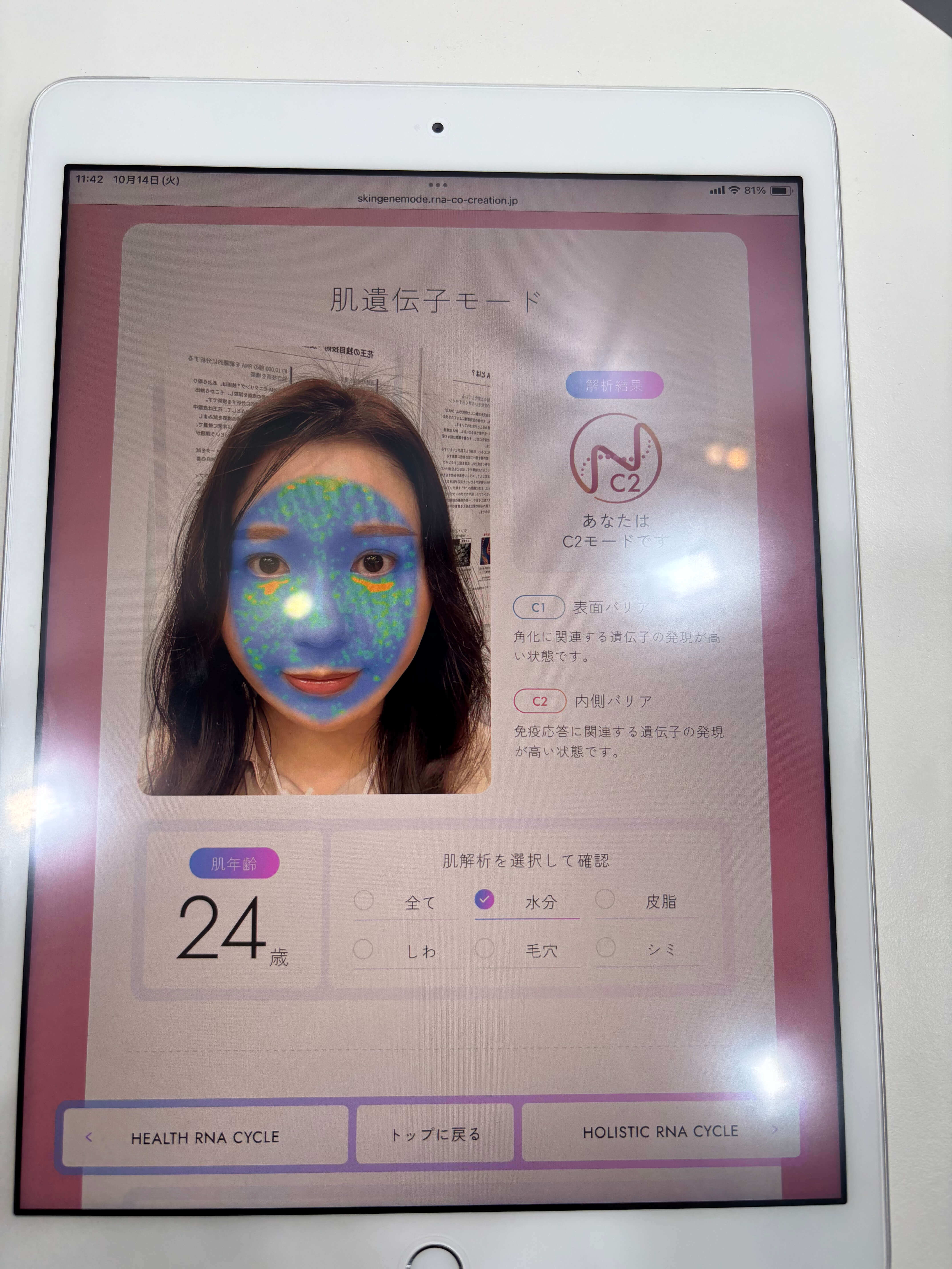 ちなみに筆者は30代ですが、肌年齢が24歳と診断され思わずニコリ。