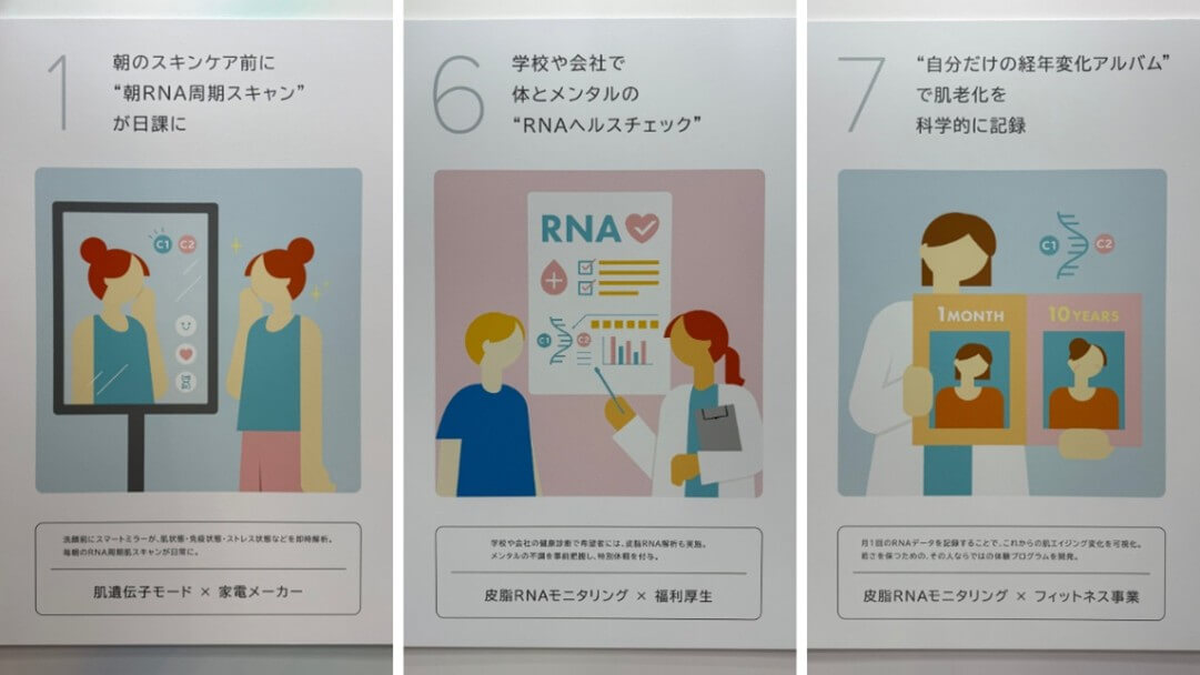 RNAによって今の自分の肌や身体の状態を知り、さまざまな場面で利活用する現在の取り組みと未来の姿をご紹介しています。