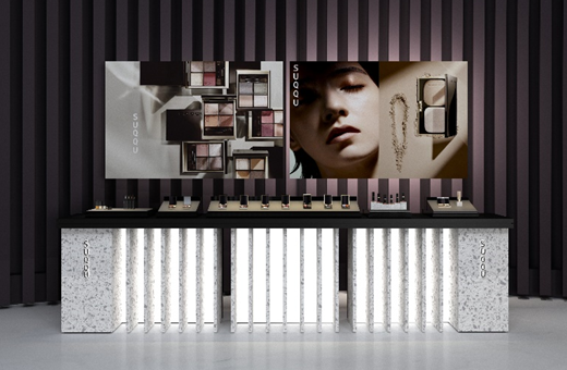 SUQQUは、大人の女性をターゲットとするプレステージ化粧品ブランドとして2003年に誕生。現在、国内の百貨店など43店舗と、海外5か国で展開しています。日本発の化粧品ブランドとしての高い品質とコンセプト、オリエンタルな切り口が好評を得て、各国で順調にビジネスを拡大しています。好調の国内市場と併せて海外展開も加速しながら、グローバルブランドとしてさらにプレステージ性を高めていきます。