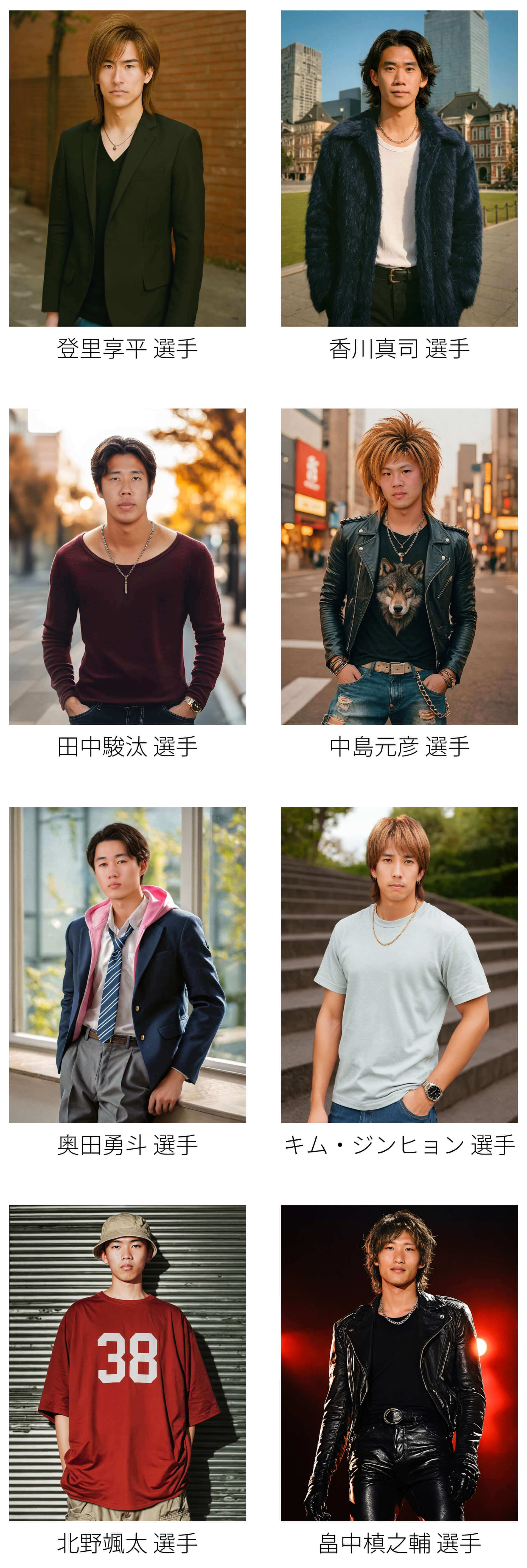 AIを用いたことで、単なるコスプレ風の加工ではなく、各選手の特徴を活かしつつ「平成のどこかにいそう」と感じられる、自然で親しみやすい仕上がりになりました。