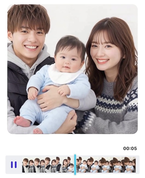 一見難しそうなAI動画も、アプリのAIエフェクトの力で簡単に家族写真にすることができます。