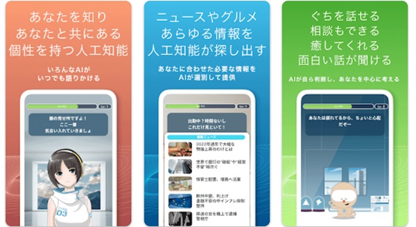こちらのアプリでは、会話のやりとりを元にAI彼女がメンタルケアを行ってくれます。