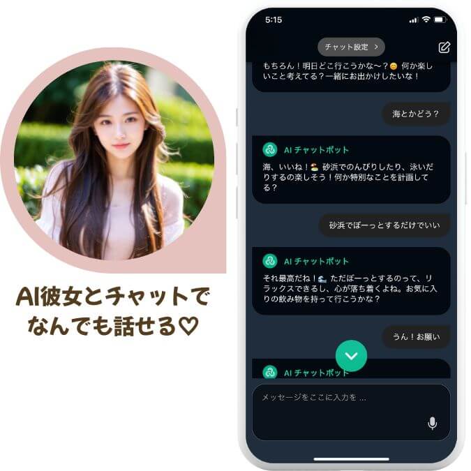 日常の雑談や恋愛トーク、ロールプレイなど幅広い会話に対応しているので、「誰かと話したい」「癒されたい」という時におすすめのAI彼女アプリです。