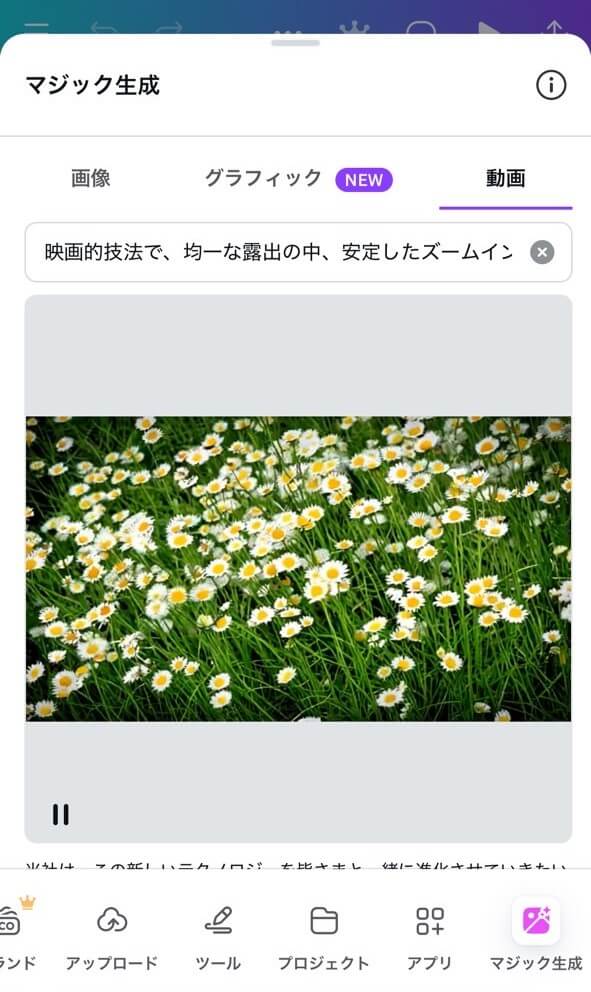 スマホアプリやWebサイトからテキストを入力するだけで、短い動画クリップを生成可能で、作成した動画はそのままプレゼン資料やSNS投稿用のデザインに組み込むことも簡単です。