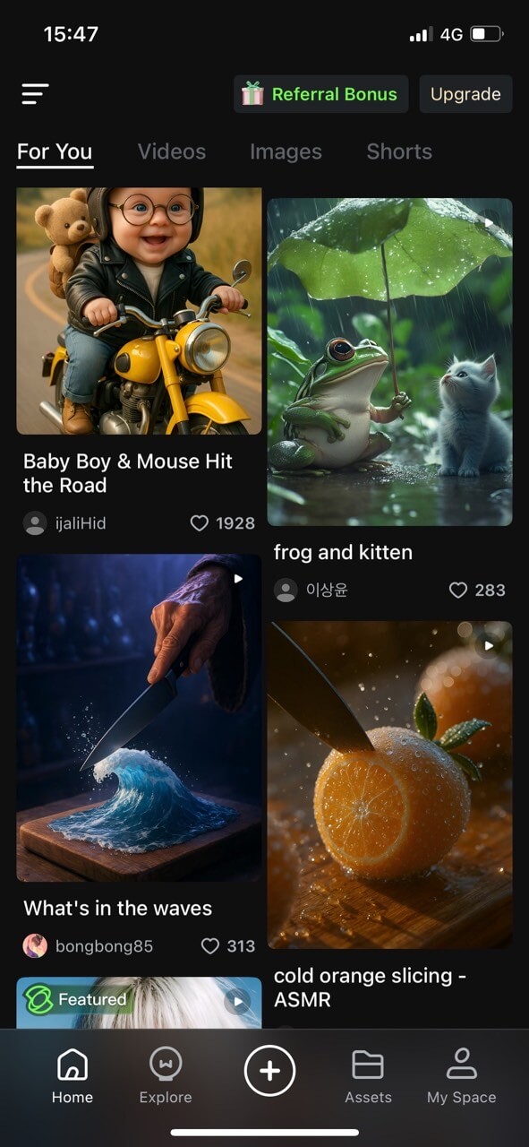 SNS用の海外風ショート動画や、テンプレートを活用したクリエイティブ動画を作りたいユーザーに最適で、プロンプトを共有・応用できる点は他のアプリにはない大きな魅力です。