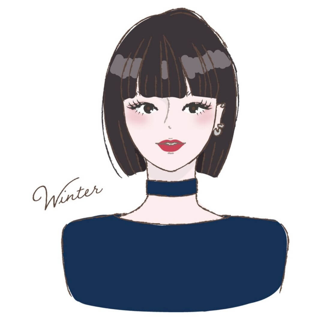 鮮やかでクリアな色、またはモノトーンのようなメリハリのある色が肌に透明感を与え、クールでドラマティックな魅力を引き出します。