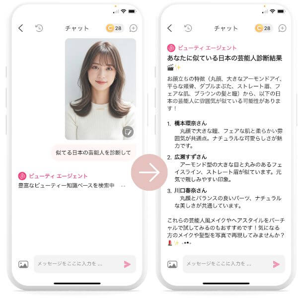 誰に似てるかを診断してもらえるだけでなく、結果を元にした美容アドバイスも提供してくれます。