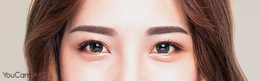こんな風に『YouCamメイク』では、眉のパターン・色・太さはもちろん、眉の位置(上げたり下げたり、寄せたり離したり)や眉の強さ、アーチ(角度)まで細かく変えることができ、微妙な「ああしたい、こうしたい」に応えてくれます。