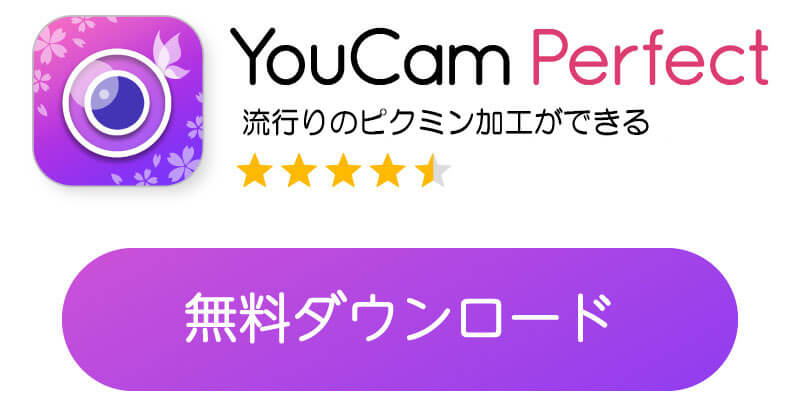 ピクミン加工は、写真加工アプリ『ユーカム(YouCam Perfect)』のレタッチ機能で簡単にできます。