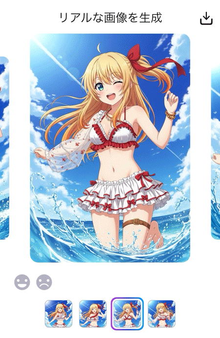 【再生成】をタップすると、同じプロンプトでも異なるAI画像が生成されます。