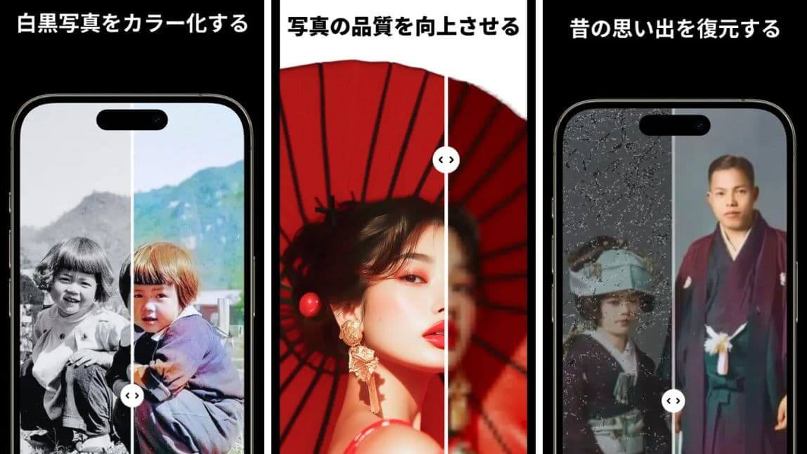 | EnhanceFox | iPhone/iPad/Android | 古い写真を修復しつつ白黒写真の色付けやアニメーション化も可能。 |