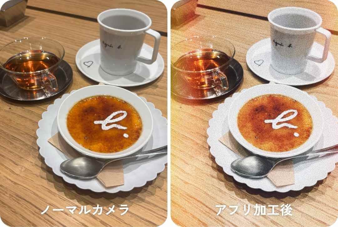 粒子感や色のにじみ方にこだわったフィルム調のエフェクトが多数用意されており、ノーマルカメラで撮影した写真を後から加工できます。