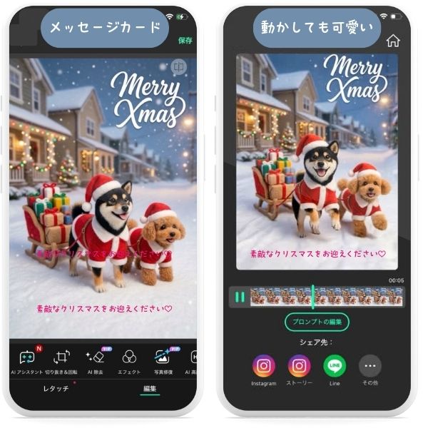 スマホだけでクリスマス用の可愛いデジタルメッセージカードがあっという間に完成しました!