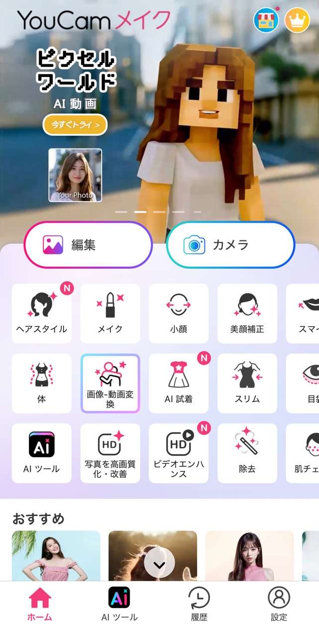 『YouCam メイク』アプリをダウンロードし、アプリを開きます。
