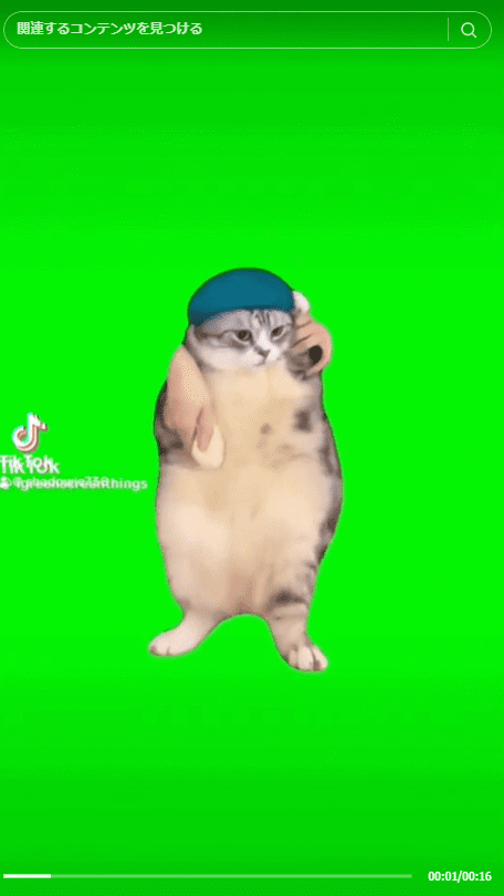 - TikTokの検索機能で「猫ミーム素材」と調べる(動画素材引用元:猫ミーム素材管理者(猫管)のTikTok投稿)