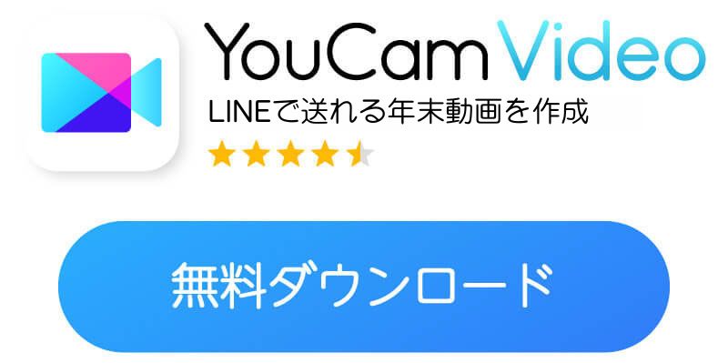 LINEで年末の動画を送るなら、写真や動画にエフェクトや動くメッセージを追加できるアプリ『YouCam Video』を使うのがおすすめです。