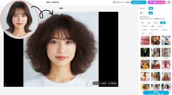 『YouCam 画像編集ツール』ではアプリ同様の動画変換機能が搭載されているので、写真をアップロードしてで爆毛ヘアが体験できますよ。