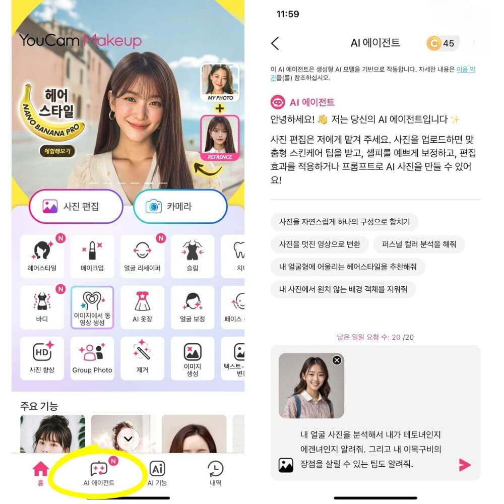 먼저 YouCam Makeup을 다운로드한 후 AI 에이전트를 사용해 직접 테토녀 에겐녀 테스트를 해보세요!
