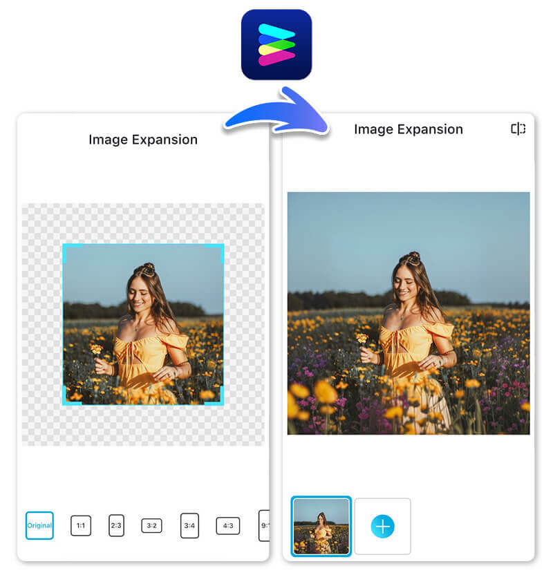 Ele analisa o conteúdo e o retrato na sua foto para gerar partes estendidas como o rosto, corpo e objetos de fundo.