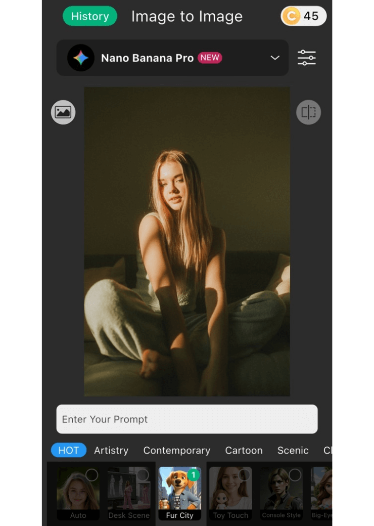 1. Selecione "Imagem para Imagem" Abra a ferramenta no app. Ela usa tecnologia avançada para manter seus traços enquanto aplica o estilo de desenho animado. 2. Envie seu Retrato Escolha uma foto de rosto clara e de frente para melhor qualidade. 3. Escolha o Estilo "Fur City" Role as opções e selecione “Fur City”. Esse estilo foi feito sob medida para imitar a estética de Zootopia. 4. Salve sua Versão Animal Gostou? É só salvar e compartilhar sua versão Zootopia.
