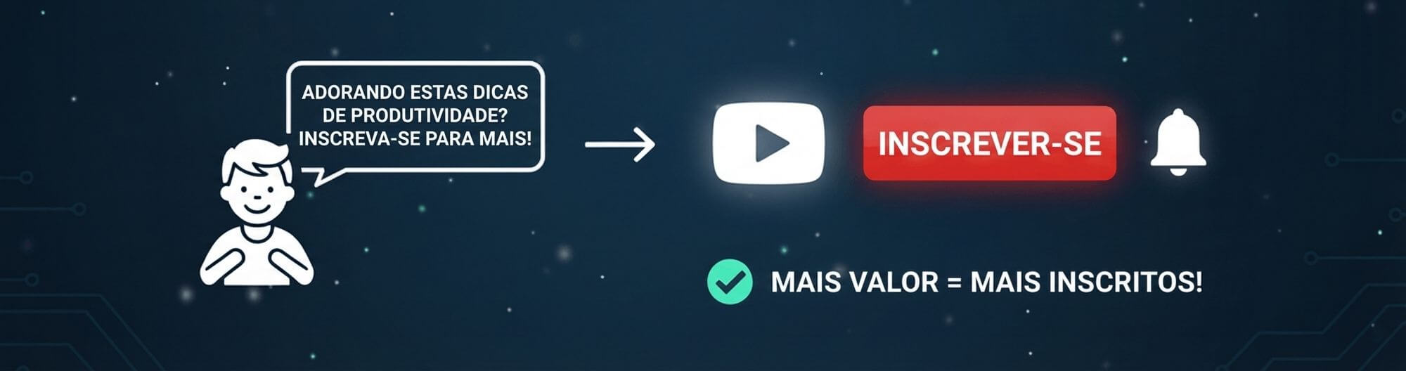 - Crescimento é um Sistema: Ganhar mais inscritos vem de um processo repetível: crie valor, embale com uma ótima thumbnail, prenda a atenção e engaje com a comunidade.