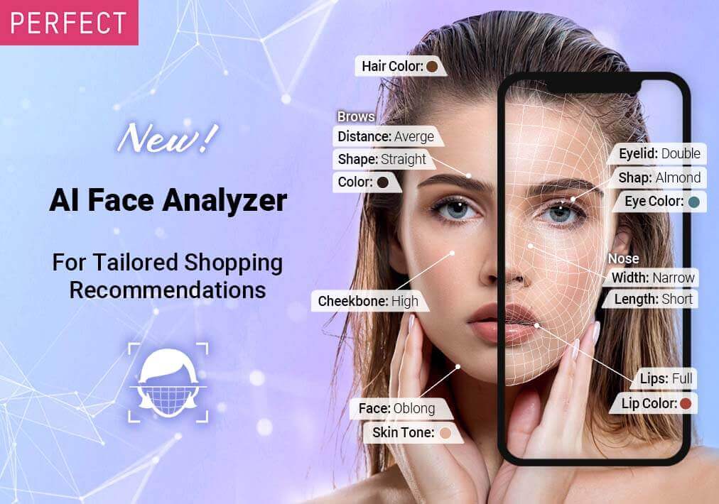 O AI Face Analyzer foi projetado para ajudar as marcas a entender melhor suas clientes, recomendando combinações de produtos personalizadas em uma variedade de categorias, incluindo maquiagem, óculos, perfume e moda. O AI Face Analyzer da Perfect Corp. está revolucionando a forma como as marcas entendem suas clientes, substituindo os questionários on-line tradicionais, que eram longos e tediosos para consumidor@s e marcas, por uma experiência divertida, interativa e hiperacetiva que entrega resultados em segundos.