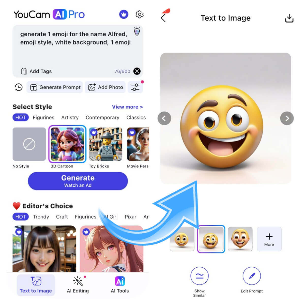 Adım 1: En İyi Yapay Zeka Emoji Oluşturucu Uygulamasını İndirin: YouCam AI Pro