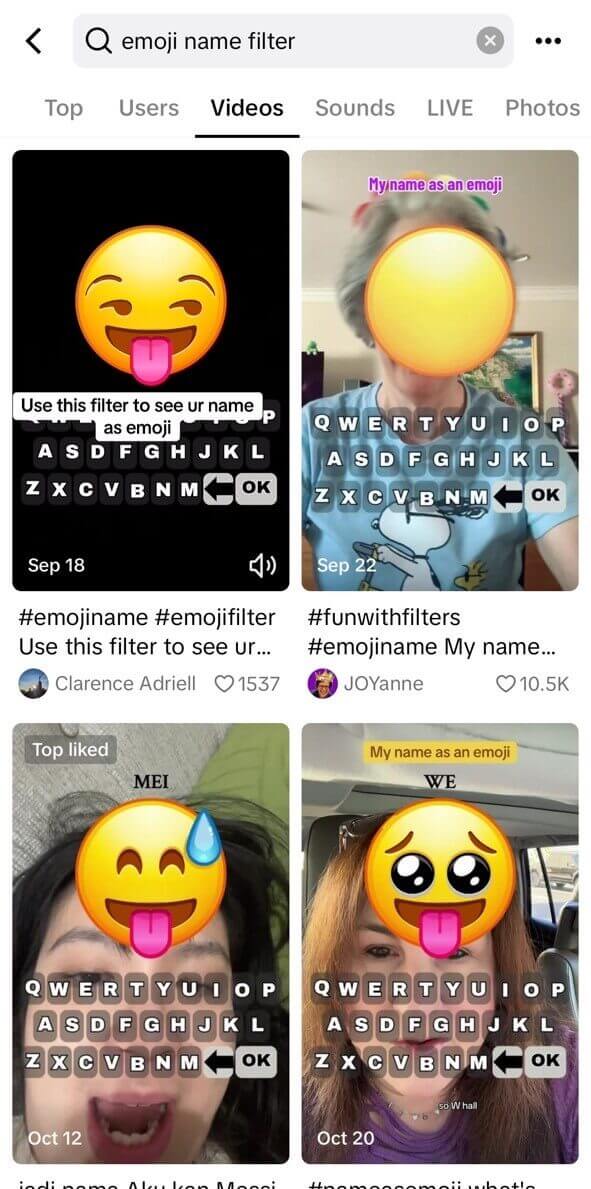 Adım 1: TikTok’ta Emoji İsim Filtresi’ni Bulun