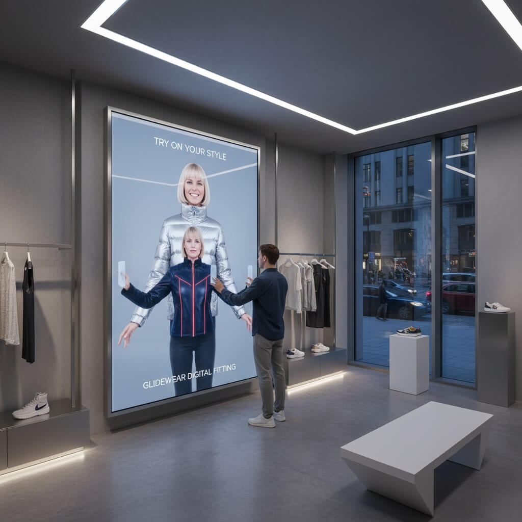 虚拟试衣丰富了店内体验,提供无缝互动。